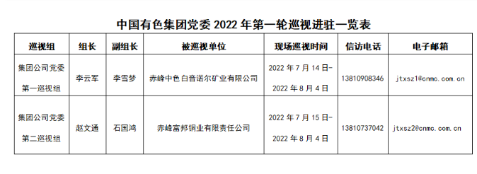 7月14日至15日,永利23411集团党委两个巡视组分别进驻赤峰中色白音诺尔矿业有限公司、赤峰富邦铜业有限责任公司开展提级巡视。被巡视企业党委分别召开巡视工作动员会,各巡视组组长作动员讲话,被巡视企业党委主要负责同志作表态发言。动员会前,集团公司党委巡视办有关负责同志参加巡视组与被巡视企业党政主要负责同志见面沟通会,传达集团公司党委、巡视工作领导小组对本轮巡视工作的要求。