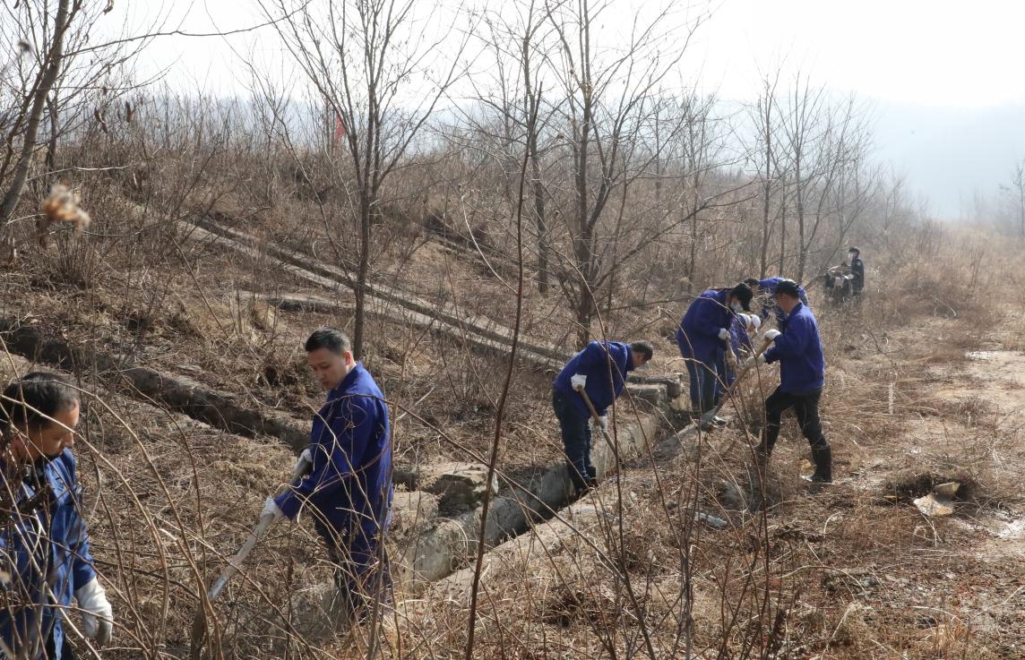 图丨中色红透山团员青年清理尾矿库坝肩排水沟