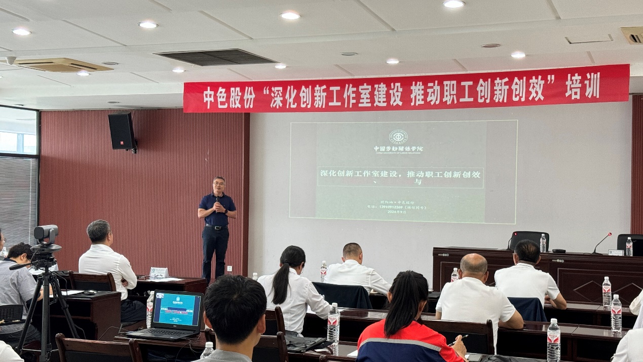 中国劳动关系学院新时代产业工人教育培训中心副主任欧阳袖博士首先围绕“深化创新工作室建设,推动职工创新创效”开展培训。他以企业的实际案例,从创新工作室的功能定位、面临问题、经验做法和工作方向等,进行了系统讲解和具体分析,对企业创新工作室建设开展针对性指导。