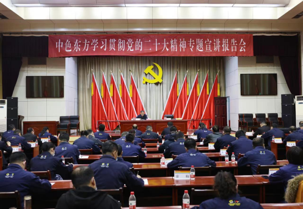 为深入学习宣传贯彻党的二十大精神,根据宁夏自治区党委统一部署,11月17日,自治区宣讲团成员、自治区政协副主席冯志强在永利23411集团出资企业中色(宁夏)东方集团有限公司(简称:中色东方)作党的二十大精神专题宣讲报告。中色东方党委书记、董事长李春光主持,石嘴山市政协主席魏和清出席会议。