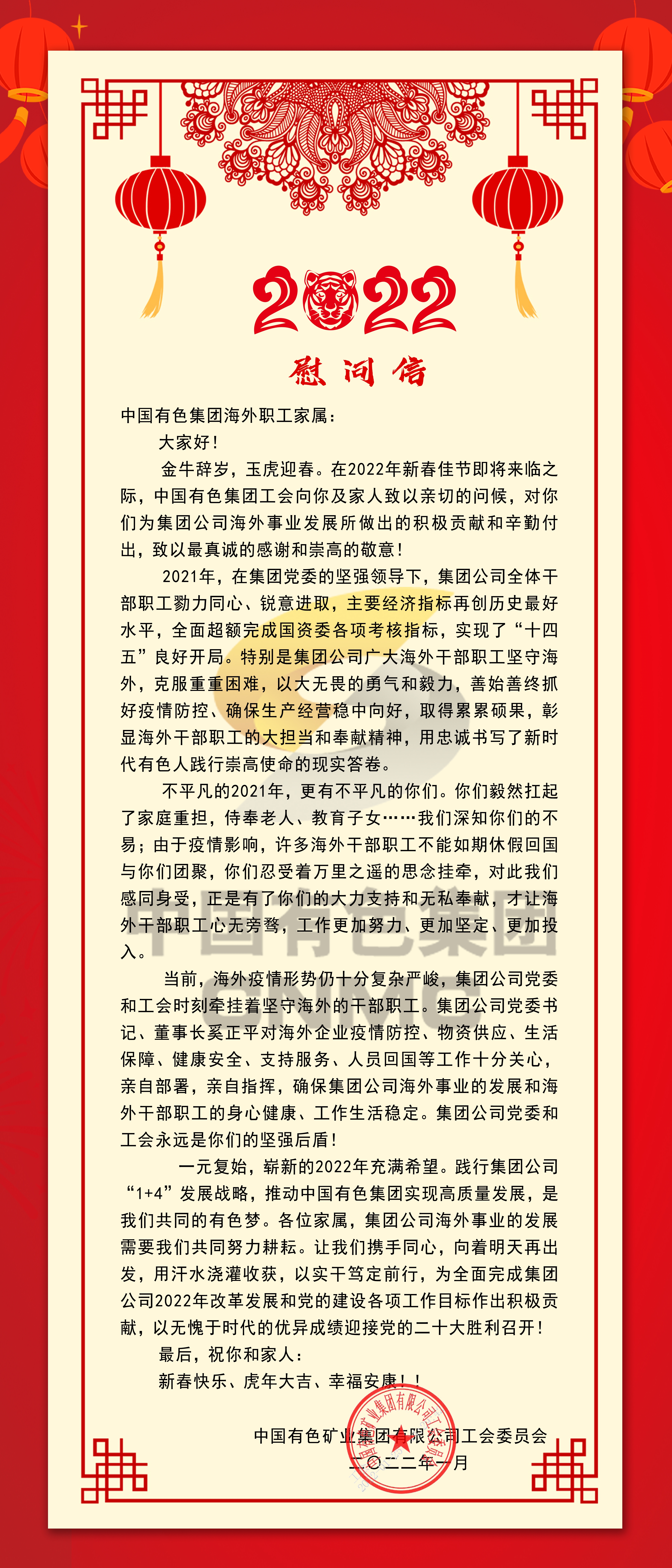 致永利23411集团海外职工家属的慰问信