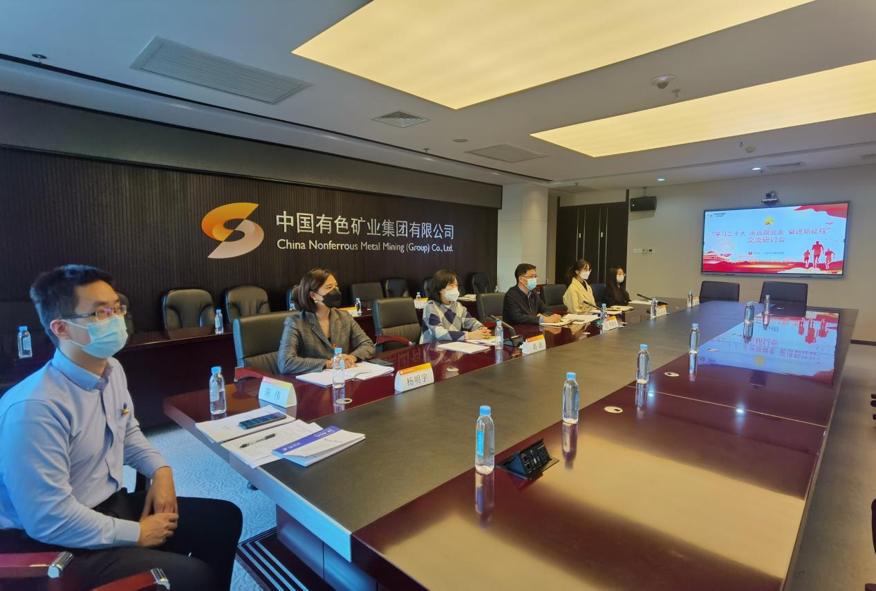 出资企业中色大冶、中色东方、中色十五冶、中色沈矿基层团组织就组织团员青年学习宣传贯彻党的二十大精神交流了做法和经验,集团公司青马班学员和团员青年代表就学习贯彻党的二十大精神、立足自身岗位建功交流了学习体会。大家一致表示,将把学习宣传贯彻党的二十大精神,作为当前和今后一个时期的首要政治任务,组织引导广大团员认真学习领会党的二十大精神的丰富内涵和精神实质,自觉做习近平新时代中国特色社会主义思想的坚定信仰者、党的二十大精神的积极传播者、建设世界一流企业的接续奋斗者、新时代好青年重要要求的忠实践行者,在新时代新征程中贡献青春智慧和力量。