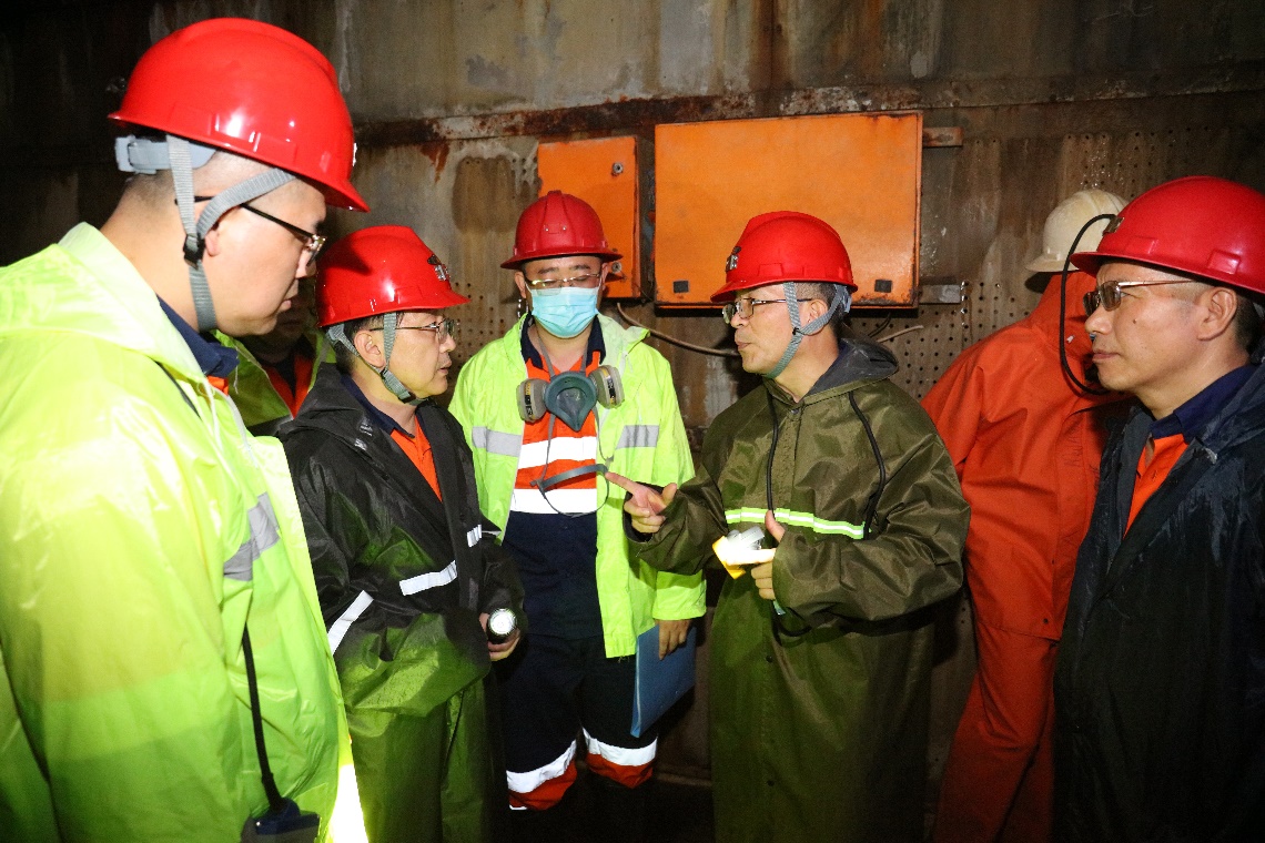 在中色非矿东南矿体井下现场查看副井井筒涌水情况及安全管理情况
