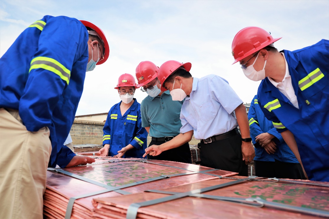 在中色刚果萃取电积车间现场调研慰问