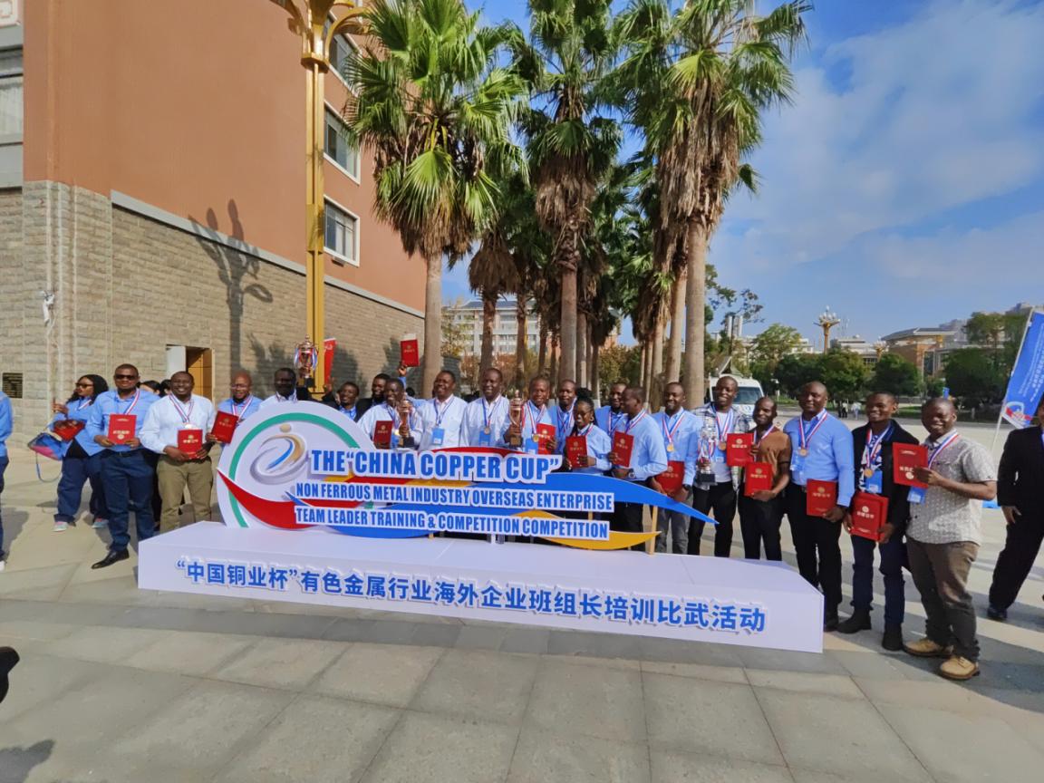 24日,参赛选手集体前往云南曲靖比武场地,围绕班组通用管理知识、安全环保管理、班组6S现场管理、班组长自我成长与发展、中文+职业技能等内容,与其他代表队进行了实战比武。经过激烈角逐,中色非矿代表队获团体银奖,谦比希铜冶炼代表队获团体铜奖;中色非矿代表队纳姆博·马龙获个人银奖,谦比希铜冶炼代表队姆万塔·基根和中色非矿代表队楚尼卡·卡布韦、卡松戈·凯尔文、穆方格拉·迦勒布、奇塔卢·布拉汉姆获个人铜奖。