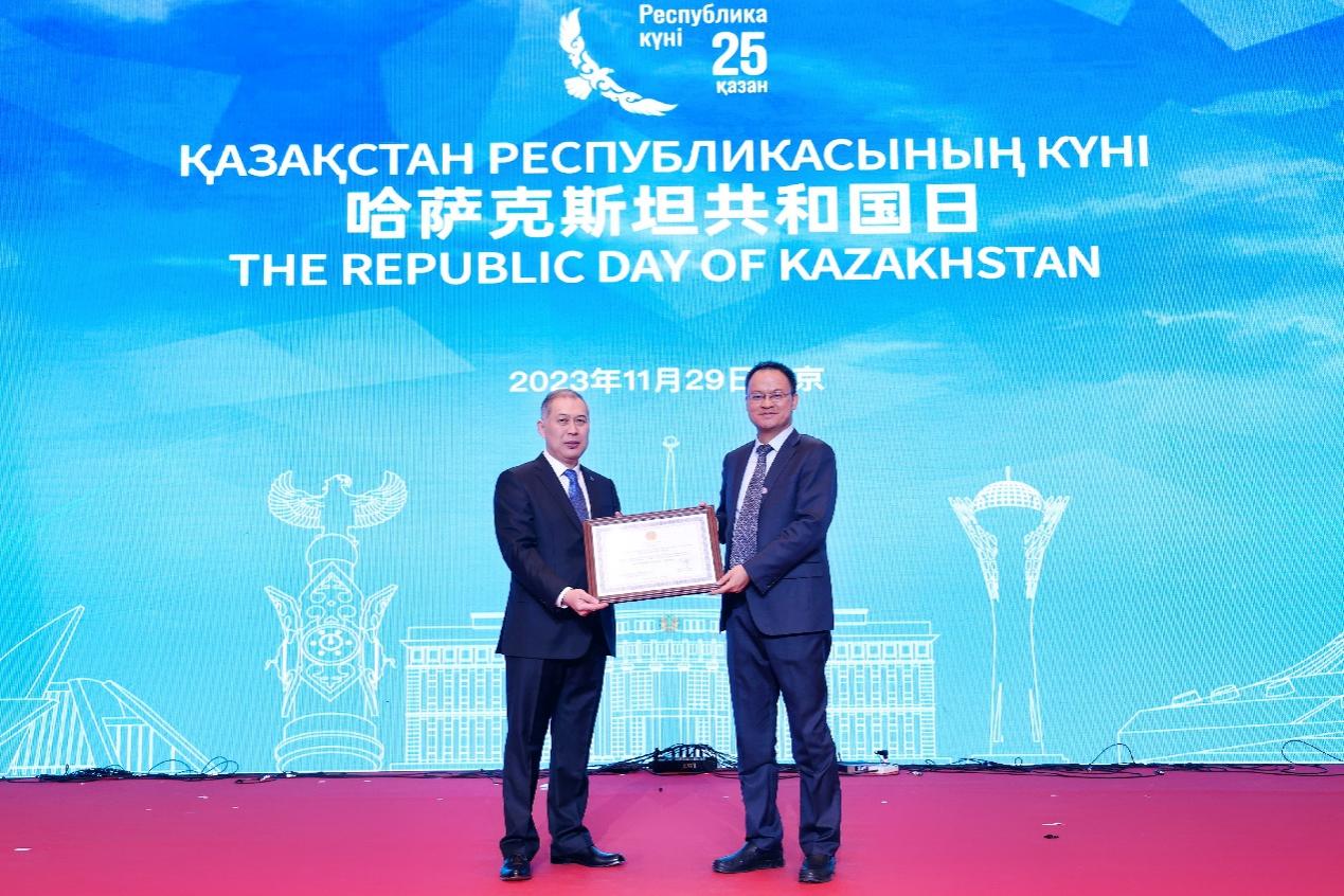 活动期间,刘宇副总经理与沙赫拉特·努雷舍夫大使互致问候,进行了亲切交流。大使先生对永利23411集团和中色股份积极响应习近平主席提出的“一带一路”倡议,在加强国际产能合作中做出的贡献给予肯定,并代表哈萨克斯坦驻华大使馆向中色股份颁发感谢状。
