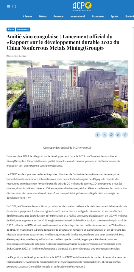 2023年12月7日,刚通社发布《永利23411集团2022可持续发展报告》,这是该社连续第二年对集团公司可持续报告进行重点宣传。