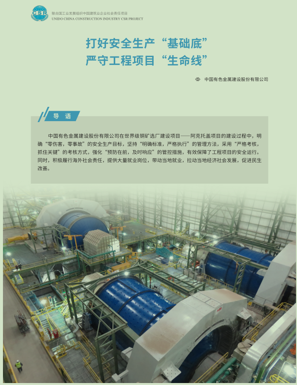 近日,联合国工业发展组织平台网站(https://open.unido.org/)公布了优秀项目管理案例。其中,由永利23411集团所属出资企业中色股份承建的哈萨克斯坦阿克托盖铜选厂扩建项目安全管理实践作为中国建筑业企业社会责任项目(项目ID:180270)优秀案例之一入选并在网站上进行宣传展示。联合国工业发展组织中国建筑业企业社会责任项目是由联合国工业发展组织(UNIDO)发起并提供资金和技术支持、商务部中国国际经济技术交流中心(CICETE)授权、中国建筑业协会(CCIA)牵头、北京中建协认证中心承办的国际合作项目。