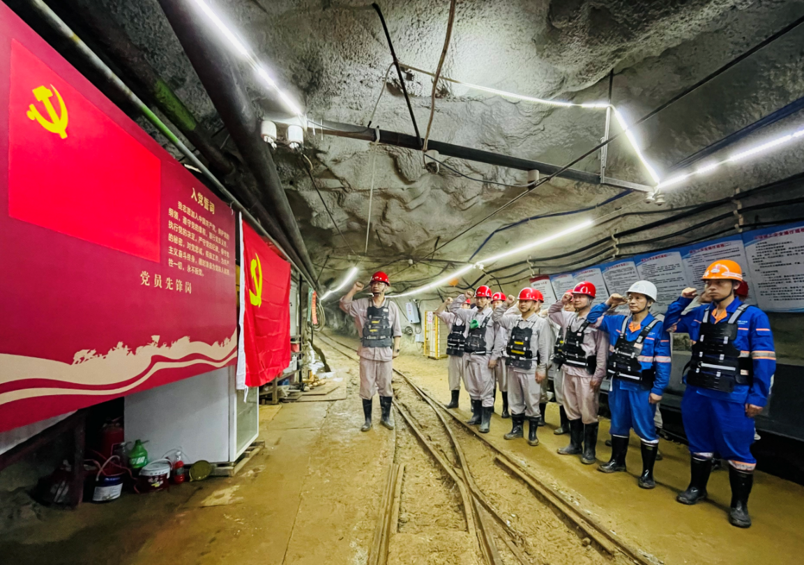 中色平桂组织党员在井下重温入党誓词,激励广大党员传承红色基因,锤炼党性修养,激发工作热情。