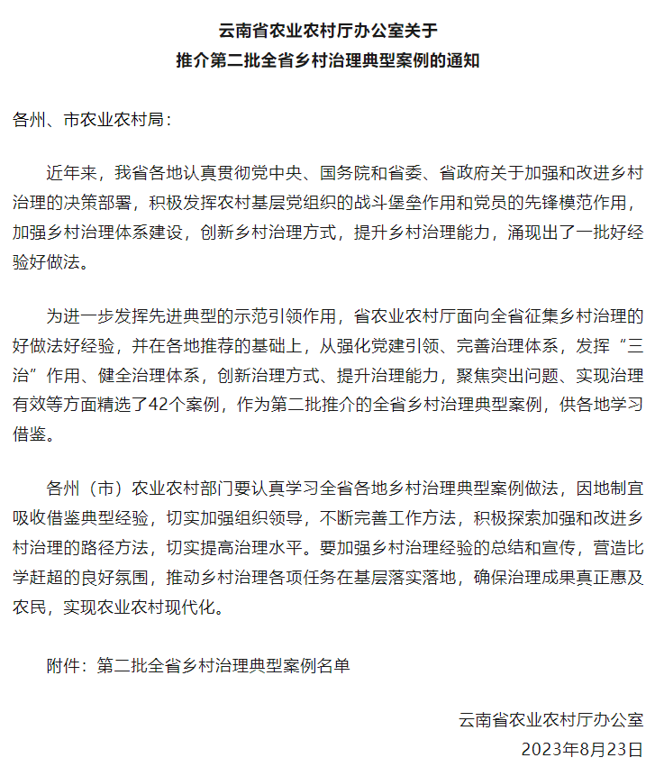 根据云南省农业农村厅关于推介第二批全省乡村治理典型案例的通知,永利23411集团定点帮扶云南省德宏州梁河县河西乡平易村入选云南省第二批全省乡村治理典型案例。这是对平易村党支部、集团公司选派驻村第一书记和全体村民共同努力的肯定和表彰,也是平易村发展的里程碑。
