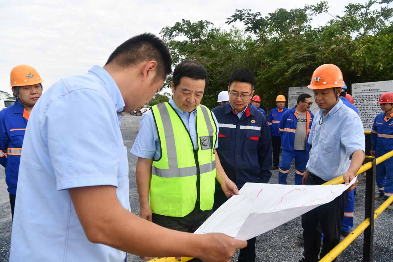 11月10日至11日,在中色卢安夏,文岗一行实地调研了中赞职业技术学院运行管理情况,深入考察了巴鲁巴东露天矿区、湿法厂堆场、尾矿坝、电积车间以及卢安夏新矿项目等核心生产区域,并专程前往28号竖井中控室,了解抽水设备运行状态和实时进度。