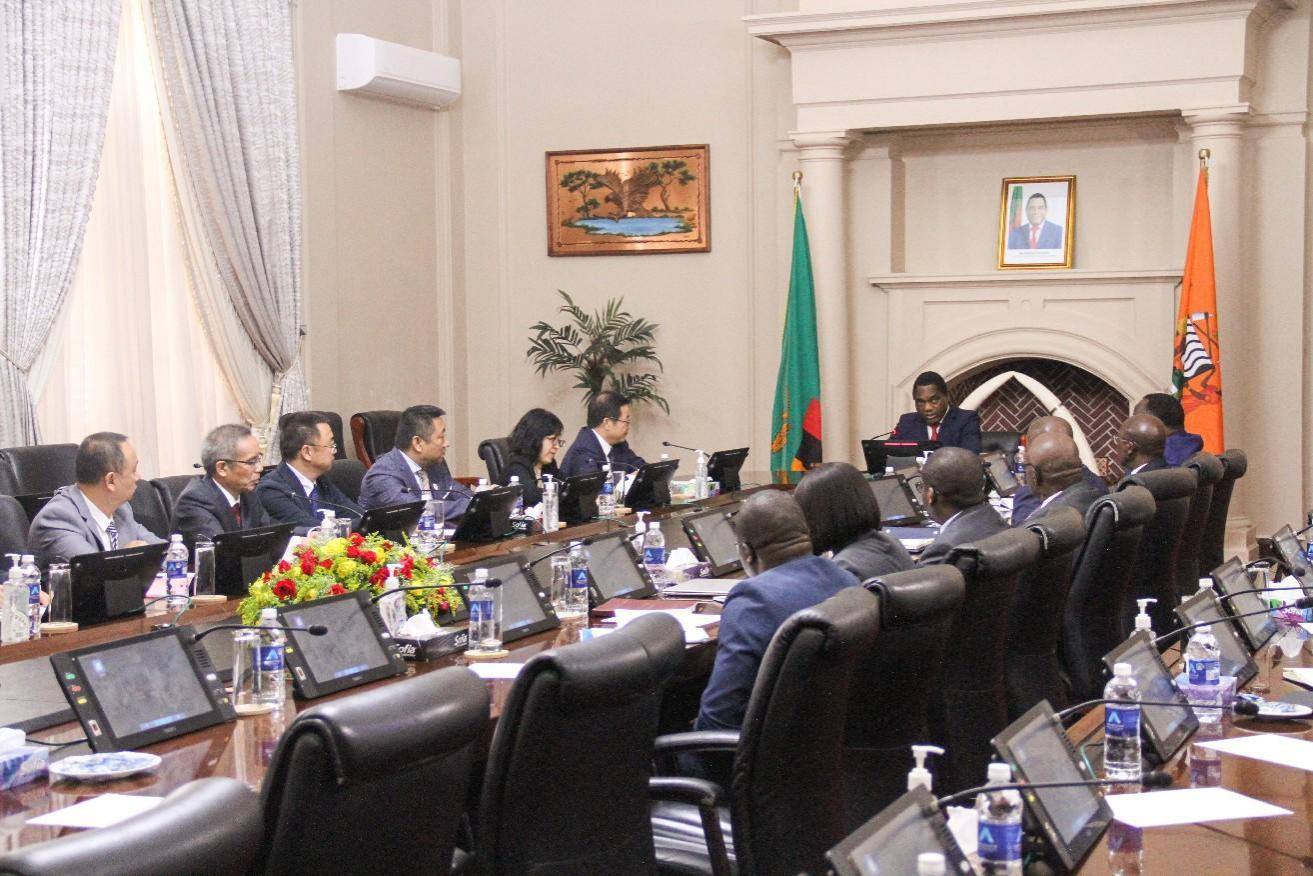 文岗首先对希奇莱马总统和赞比亚政府长期以来给予永利23411集团的关心支持表示感谢。他介绍了卢安夏28号竖井、中色非矿东南矿体和桑巴矿山等集团在赞重点项目建设情况,表达了永利23411集团对赞比亚市场的长期承诺和坚定信心。文岗表示,永利23411集团将持续加大对在赞矿业项目的投资和运营力度,坚持绿色发展理念,为促进当地经济繁荣和民生改善作出更大贡献;集团还将积极参与坦赞铁路的恢复和运营,为中赞两国在经贸和矿业领域的合作提供更加坚实的支撑。