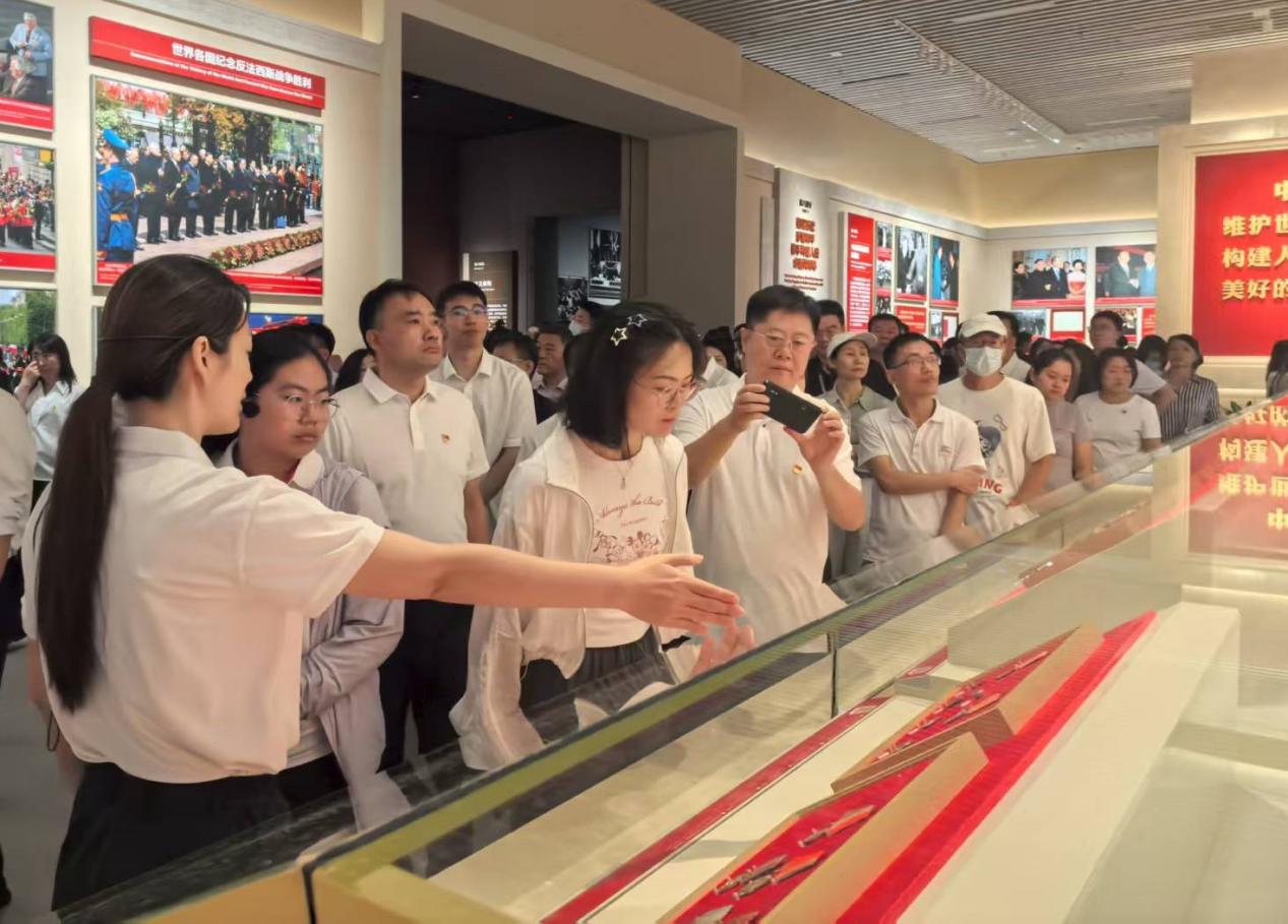 本次主题展以大量珍贵的历史图片、实物展品、文献资料和现代技术,全面再现了在中国共产党领导下,全国各族人民以铮铮铁骨战来犯之敌、以血肉之躯筑钢铁长城,历经艰苦卓绝的浴血奋战,最终全面取得抗日战争伟大胜利的壮阔历史画卷。参观过程中,大家认真聆听讲解,不时驻足凝视,切身感受到在民族存亡的危急关头革命先烈视死如归、血战到底的英雄气概,被中华民族百折不挠、勇毅前行的必胜信念深深震撼,也更加深刻感受到今天和平生活的来之不易,必须倍加珍惜、倍加努力。