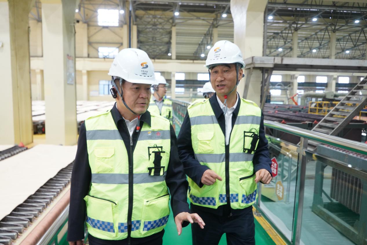 文岗一行实地考察了丰山铜矿尾矿库、管控中心及弘盛铜业智控中心、化验室、电解车间,详细了解了企业环保督察整改、数字矿山和智能工厂建设等情况。