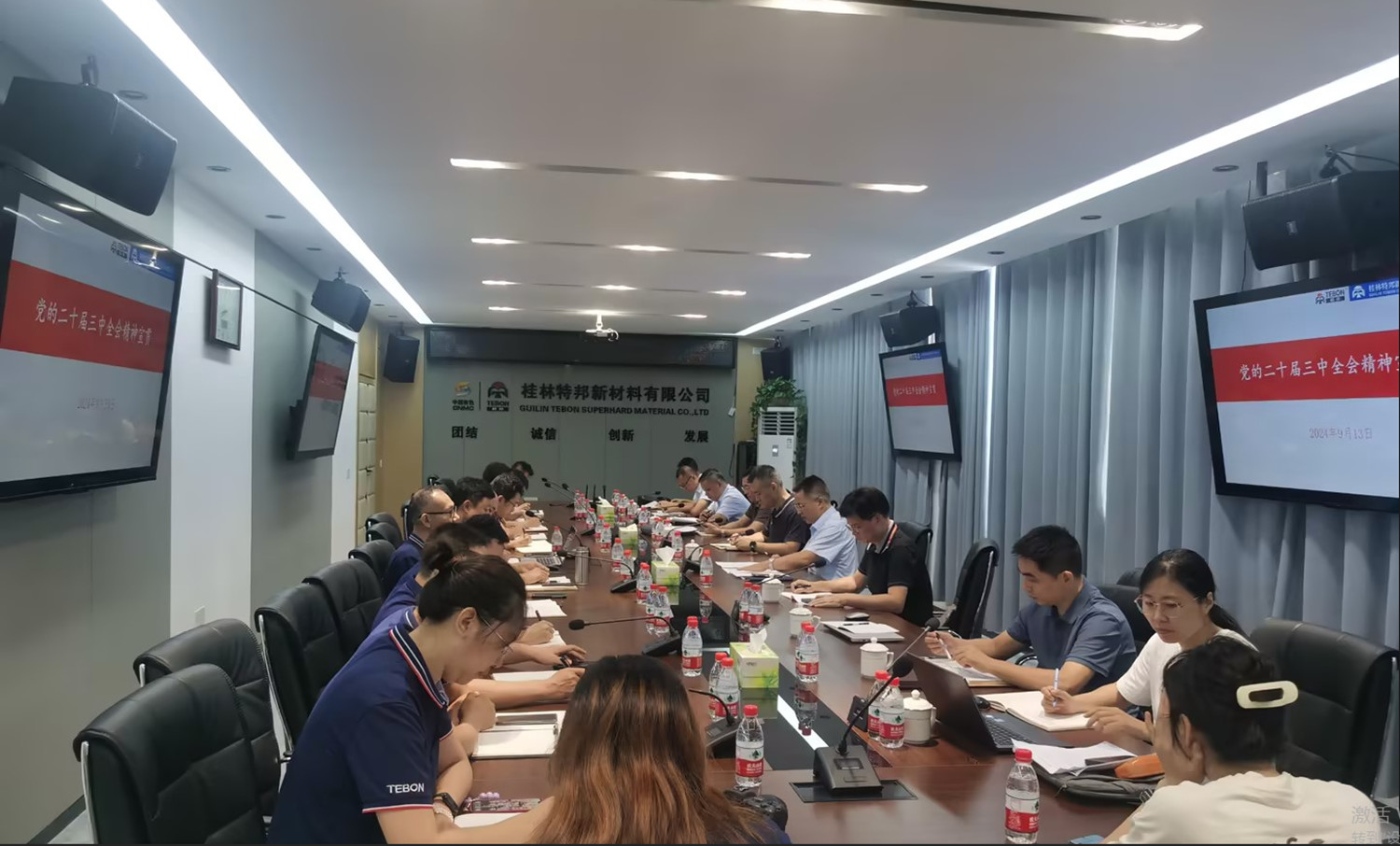 9月13日,中色桂林院党委书记、董事长、总经理杨国高到特邦新材调研指导工作,作党的二十届三中全会精神专题宣讲。中色桂林院党委委员、总会计师刘宗勇,党委委员、副总经理胡乔帆,党委委员、董事会秘书、党群综合办主任李年友及相关部门负责人陪同调研。
