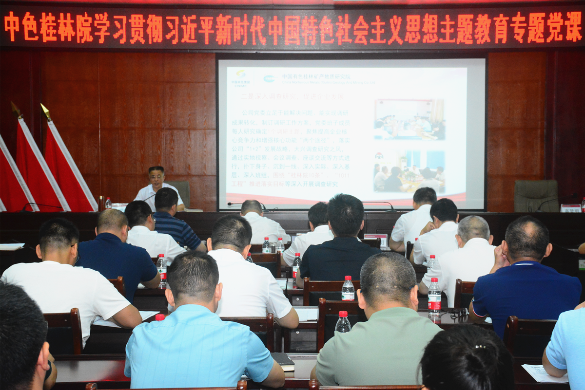 6月29日上午,中色桂林院党委召开学习贯彻习近平新时代中国特色社会主义思想主题教育专题党课会议。党委副书记、总经理杨国高以《全面贯彻落实习近平新时代中国特色社会主义思想,奋力建设中色桂林院“双一流”科研院所》为题,结合前期的理论学习、调查研究和自身思考,为广大党员干部讲授主题教育专题党课。永利23411集团第一巡回指导组副组长马月龙,组员王伟强到会指导。公司党委委员、纪委书记高贤明主持会议。