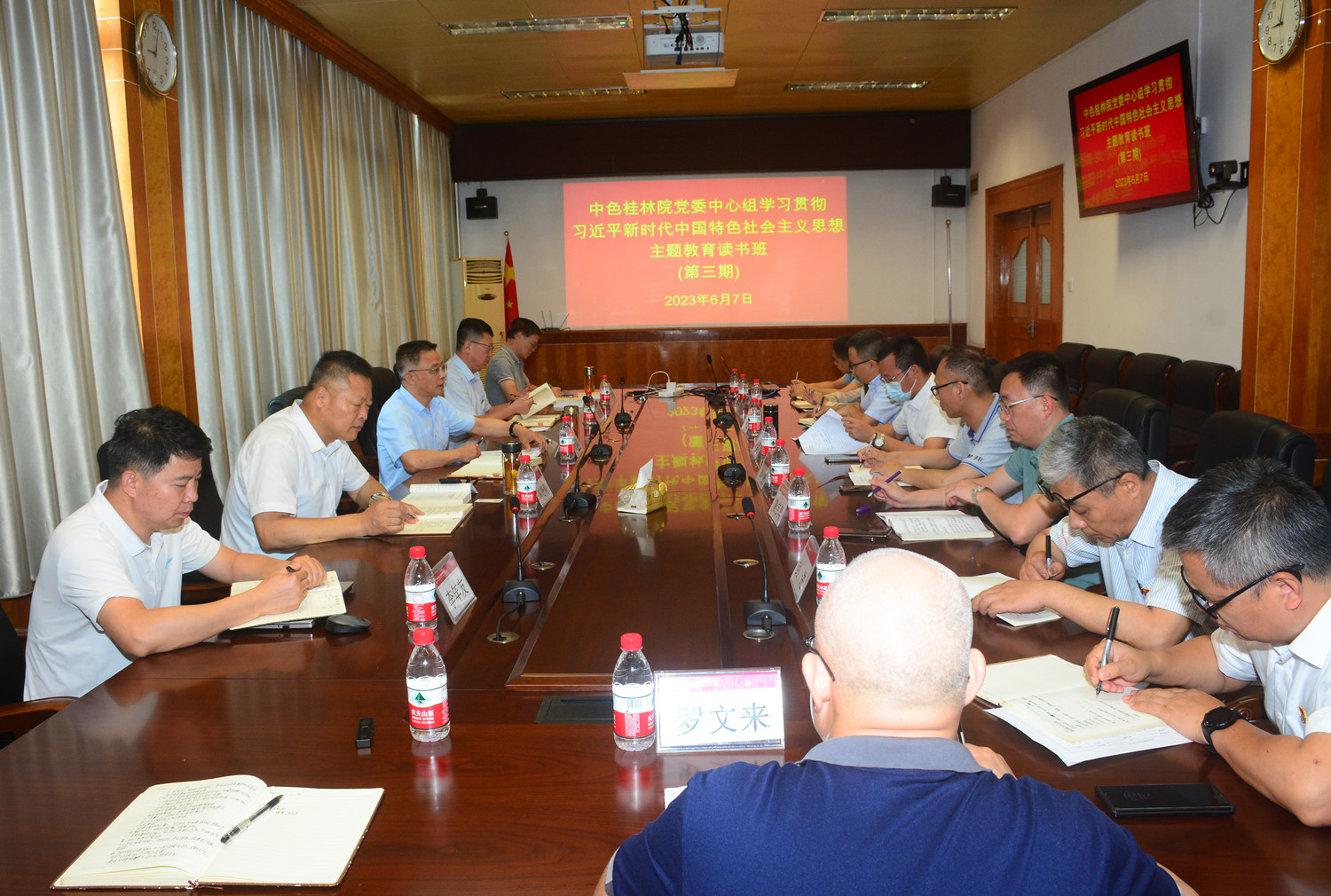 6月7日,中色桂林院党委举办理论学习中心组学习贯彻习近平新时代中国特色社会主义思想主题教育第三期读书班,闭门集中学习《习近平新时代中国特色社会主义思想的世界观和方法论专题摘编》《习近平关于调查研究论述摘编》以及习近平总书记有关重要讲话精神。中色桂林院党委副书记、主题教育领导小组组长杨国高主持读书班,并围绕《聚焦集团主责主业 重振桂林院科研雄风》作中心发言,公司领导班子成员,职能部门和相关业务单位负责人参加读书班集中学习和研讨。