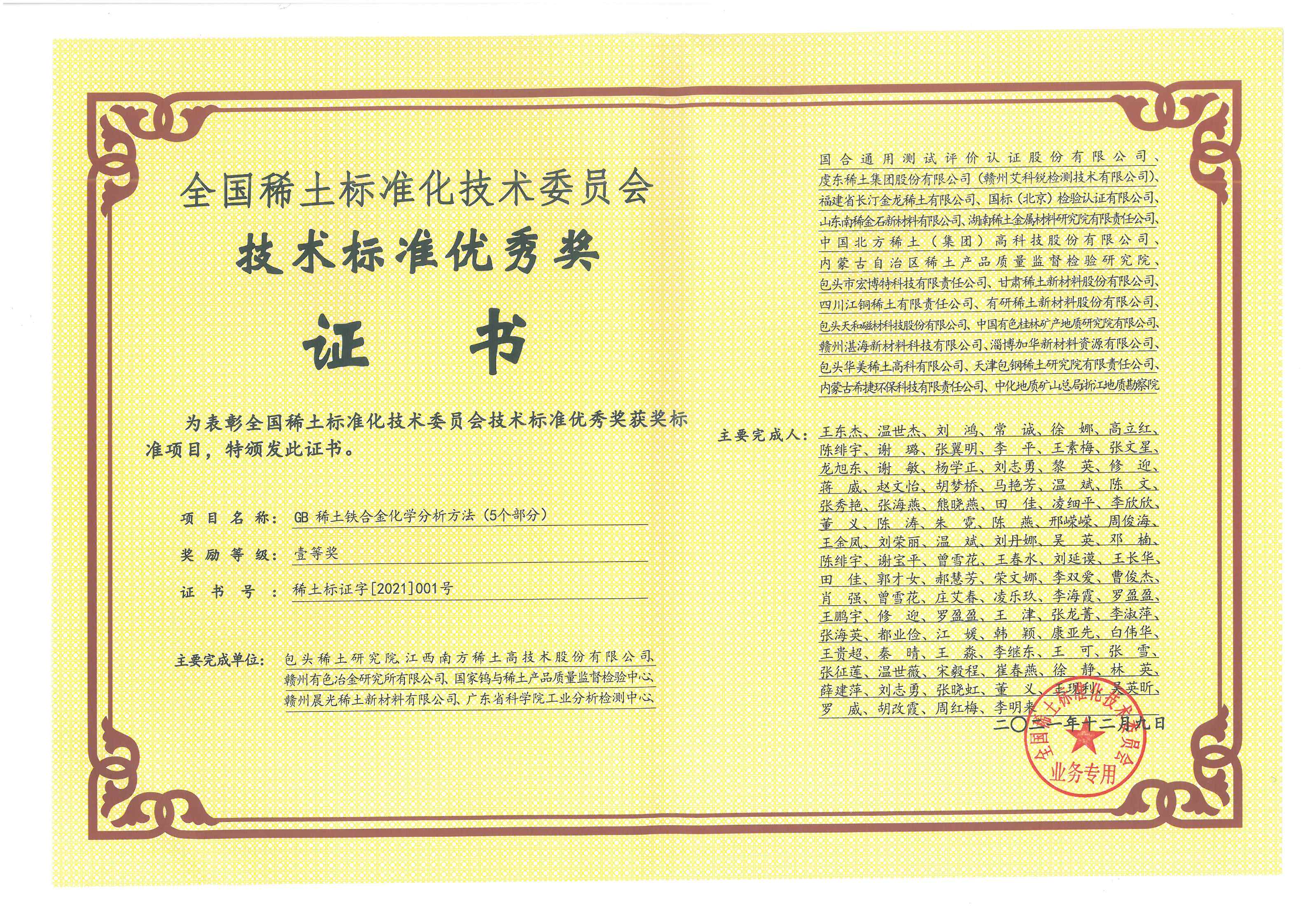 全国有色标准化技术委员会标准技术优秀奖-2021年