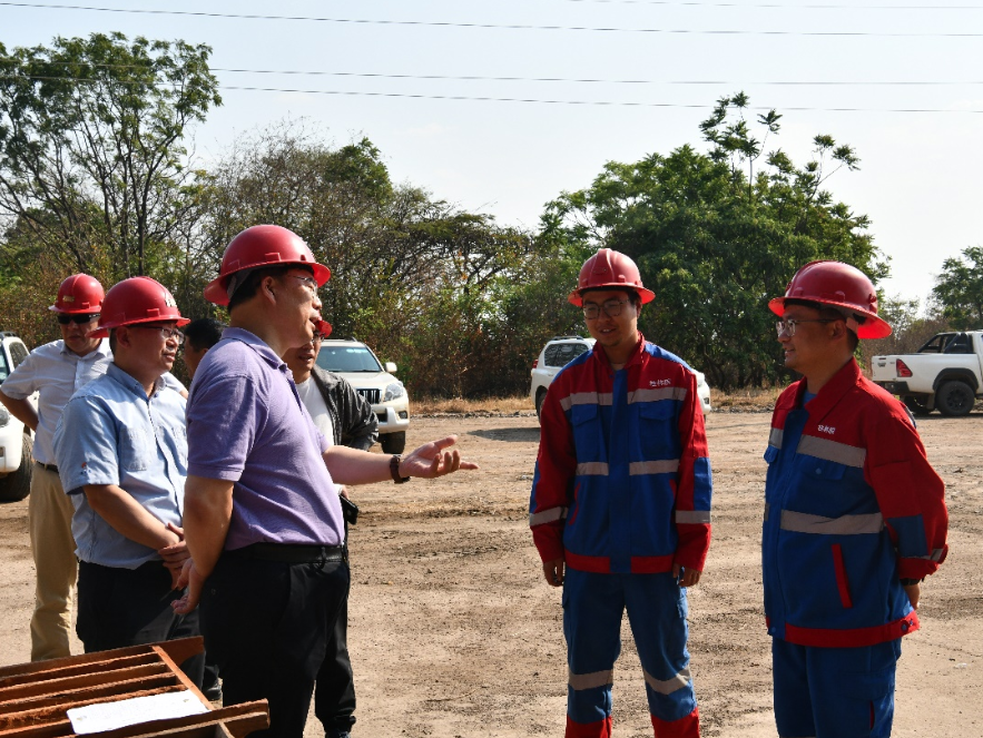在刚果金迪兹瓦项目,奚正平董事长认真听取了中色桂林院刚果公司(简称“刚果公司”)负责人的工作汇报,详细了解公司概况、人员团队及业务情况,重点了解刚果公司服务集团情况以及今后科研勘查的方向。奚正平董事长对刚果公司取得的找矿成果表示赞扬,对未来科研和勘查发展方向表示肯定。他强调,刚果公司要进一步延伸服务集团链条,积极开拓边坡综合防治、水文地质研究等水工环地质方向的业务;要在科研和勘查找矿突破上狠下功夫,切实保障集团资源开发可持续发展。