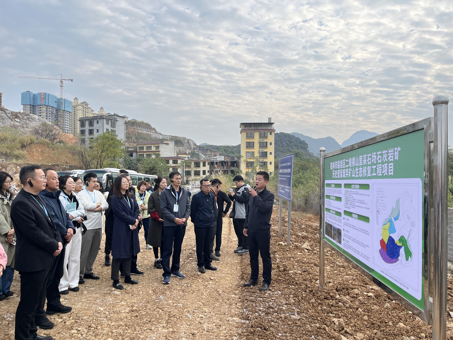 11月21日至22日,2024年自然资源部生态修复领域科技创新平台学术交流会在桂林召开。中色桂林院生态环境事业部实施的“临桂区二塘横山里采石场石灰岩矿历史遗留废弃矿山生态修复工程”(以下简称“横山里项目”)作为大会的实地考察观摩点,自然资源部科技发展司副司长辛红梅、国土整治中心副主任仲崇峻、桂林市副市长龙杏华等领导分别到场指导,全国各地100多位专家学者参加现场观摩。中色桂林院党委委员、副总经理赵延朋,生态环境事业部负责人及项目骨干参加交流会。