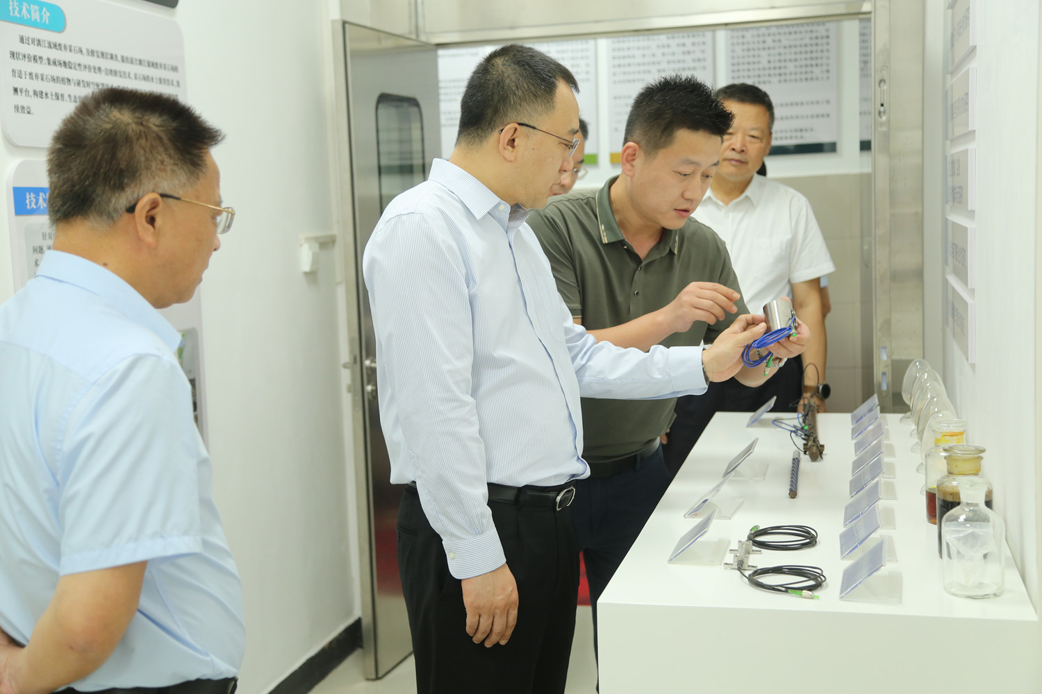 范圣权一行先后深入特邦新材超硬精密刀具、金刚石绳锯、锯片等产品生产车间,工程中心硅碳负极材料生产线,百锐光电水热法KTP晶体生长区及实验室,地质事业部、生态环境事业部及分析测试中心实验室等基层一线进行融入式调研,全面了解了中色桂林院各业务板块特色特点、产品生产与销售、市场经济效益、重要科研项目进展和基层党建等情况。