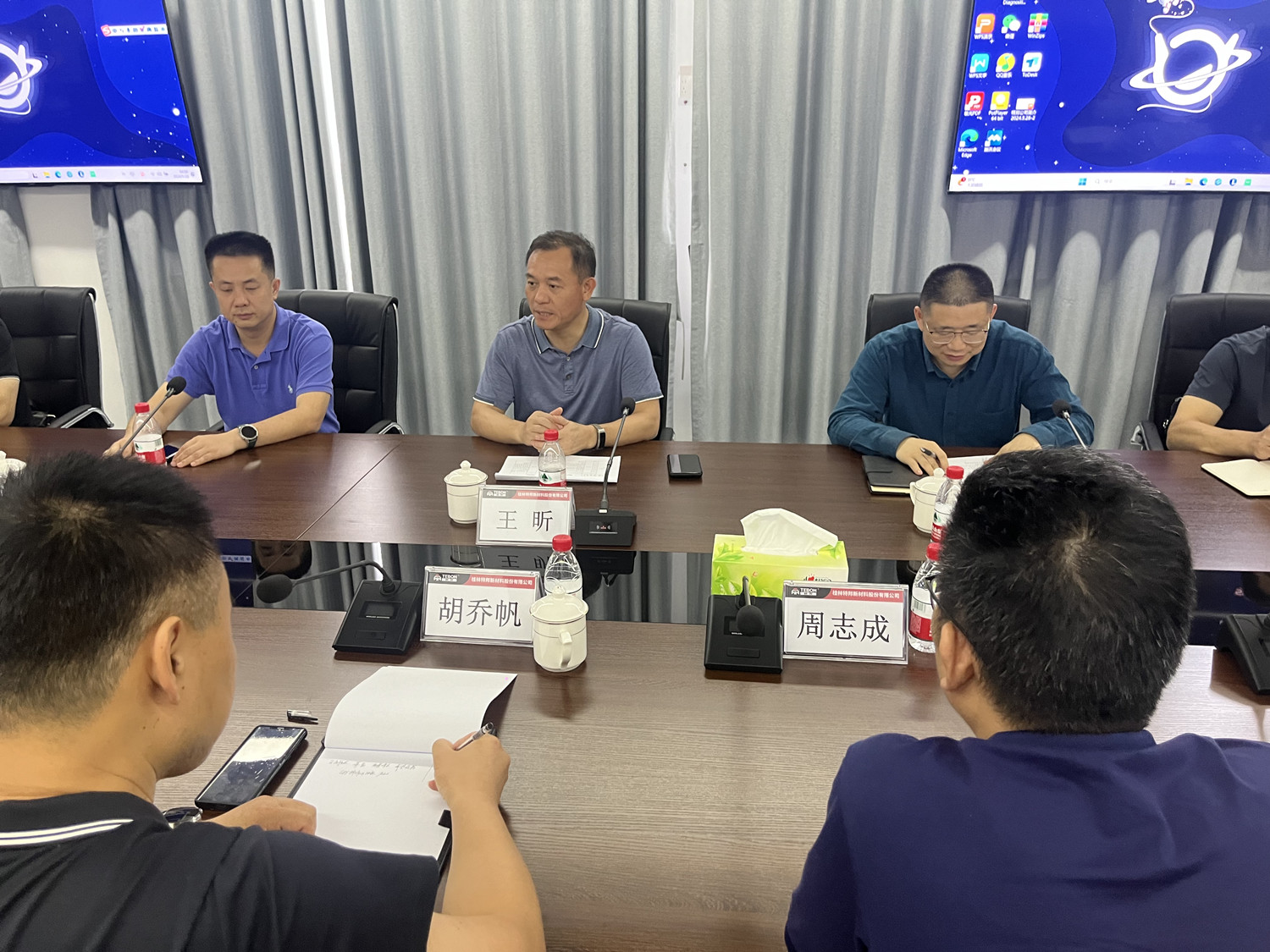 5月28日,桂林市副市长王昕一行到中色桂林院特邦公司调研,中色桂林院党委委员、副总经理胡乔帆,特邦公司、工程中心负责人等陪同调研并参加座谈会。