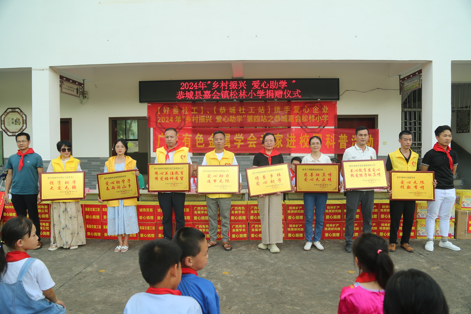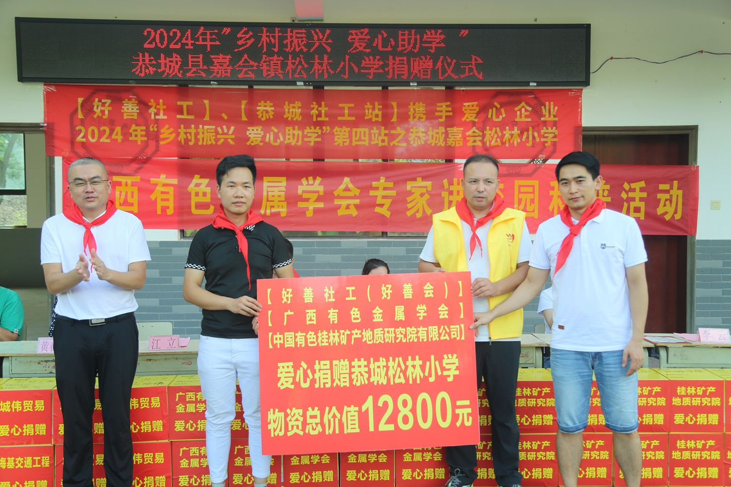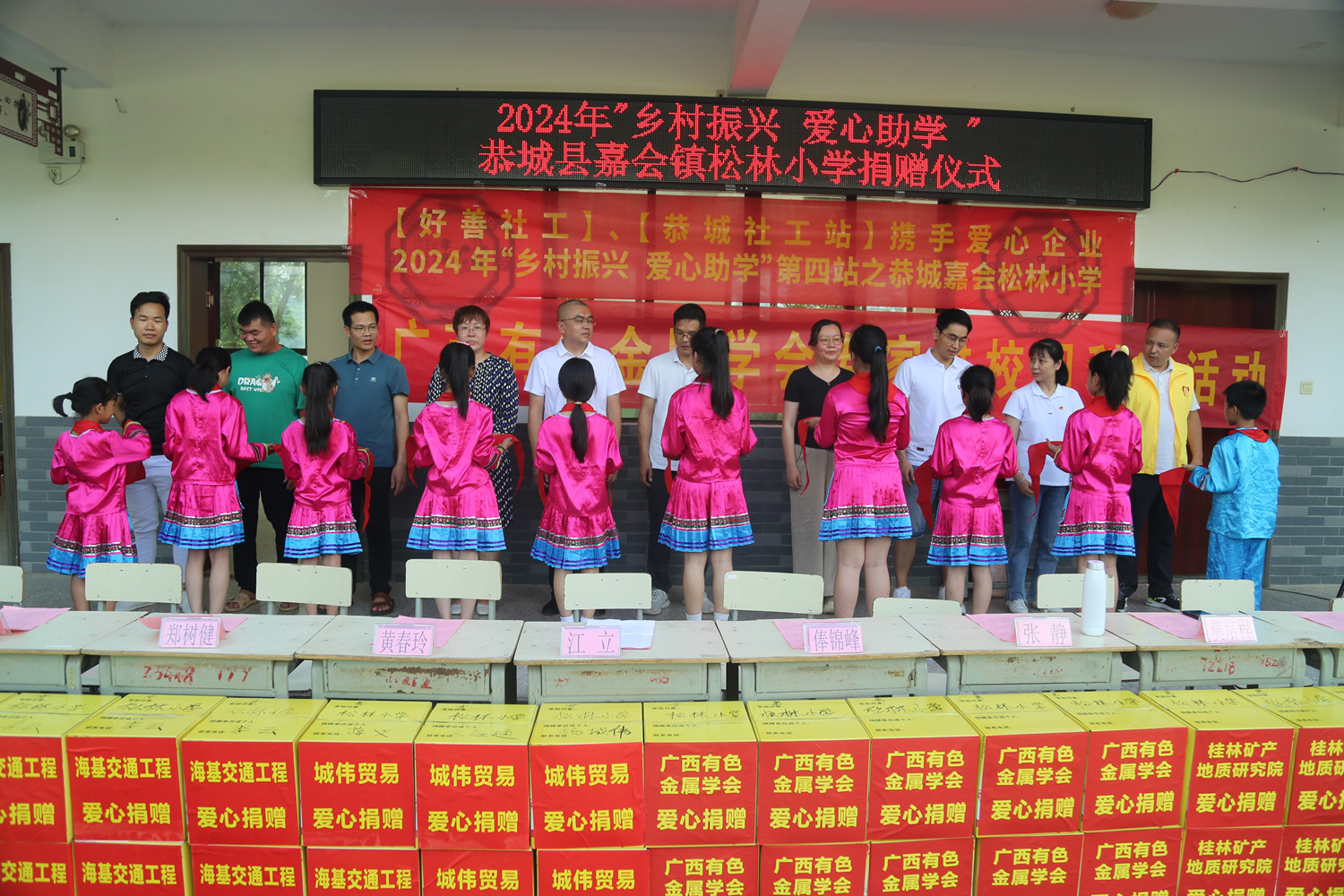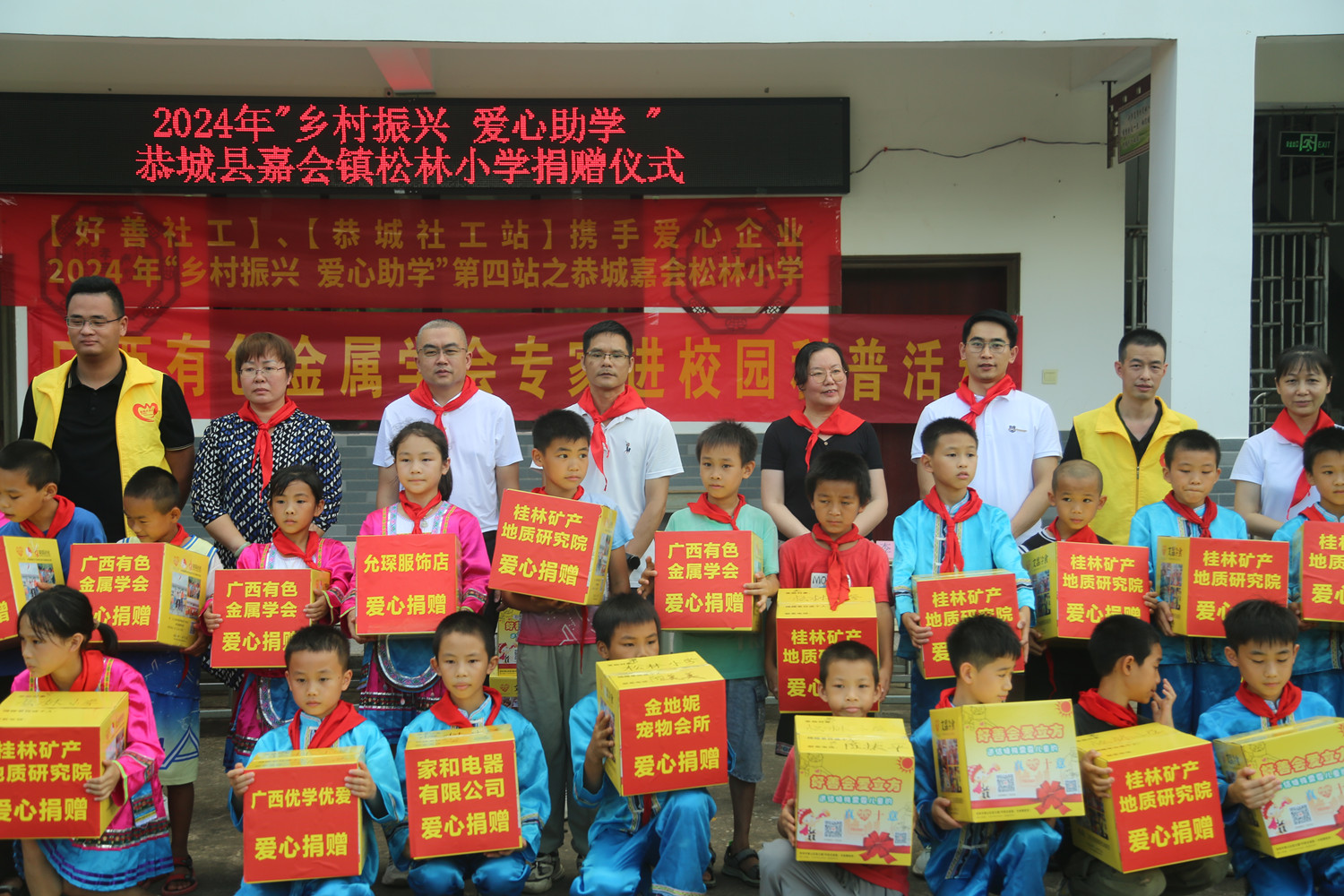 恭城县松林小学创办于1962年,坐落于广西桂林市恭城瑶族自治县嘉会镇,是全镇唯一一所小学,距今已有62年历史,目前在校仅为一至四年级学生共57人,96%以上为瑶族,多为留守儿童。此次助学活动意在给孩子们送科学、送爱心,为他们种下希望和知识的种子,明日成长为国家栋梁。下一步,中色桂林院将继续积极履行社会责任,践行央企担当,发挥专长特色,传承知识,筑梦未来。