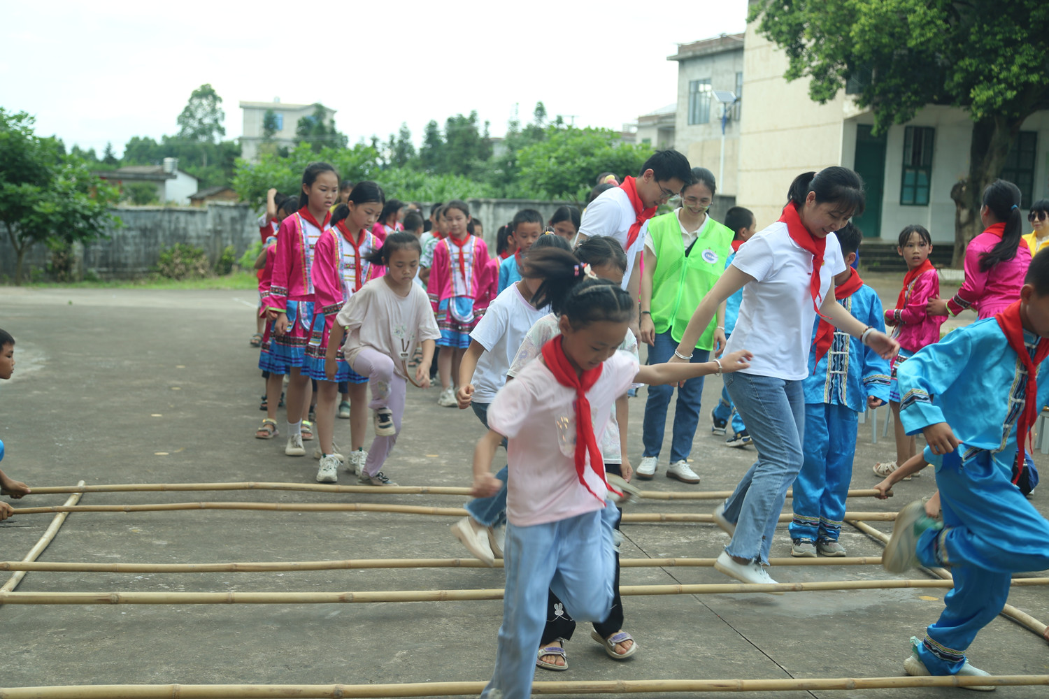 捐赠仪式上,中色桂林院志愿者为57名留守学生捐赠了助学大礼包,为学校捐赠了2台落地风扇等物资,并勉励学生们要认真学习,通过教育树立远大理想,将来用所学知识回报社会,把爱心和善举播传递下去。活动现场,松林小学的学生们表演了精彩的舞蹈,并和志愿者们跳起了欢快的竹竿舞,对志愿者远道而来的关怀表示感谢。