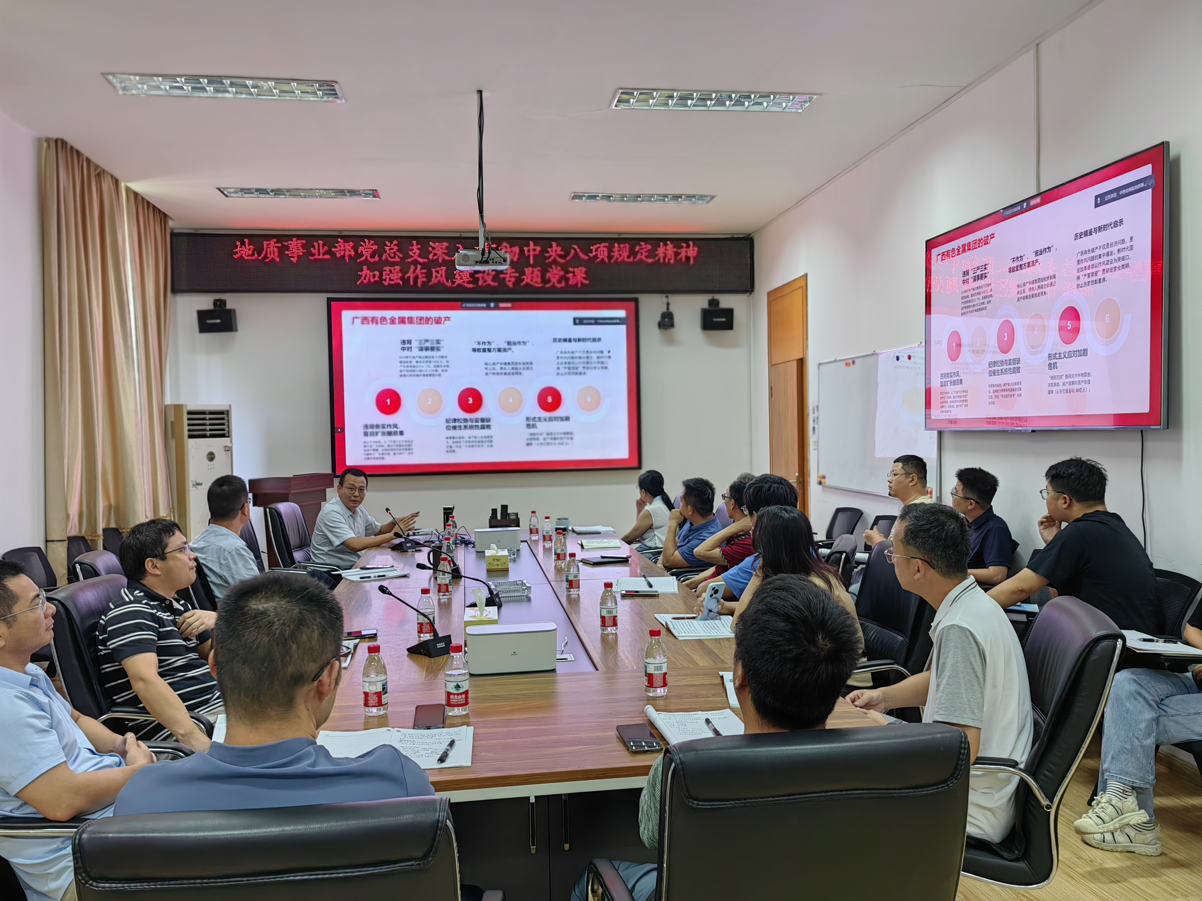 为持续推进深入贯彻中央八项规定精神学习教育在公司落实落地,7月中上旬,中色桂林院党委书记、董事长卢宗柳,党委副书记、总经理胡朋等领导班子成员分别对桂林院所属各单位学习教育开展情况进行了指导督导,并同步开展了讲专题党课、调查研究、党建基层联系点等工作。