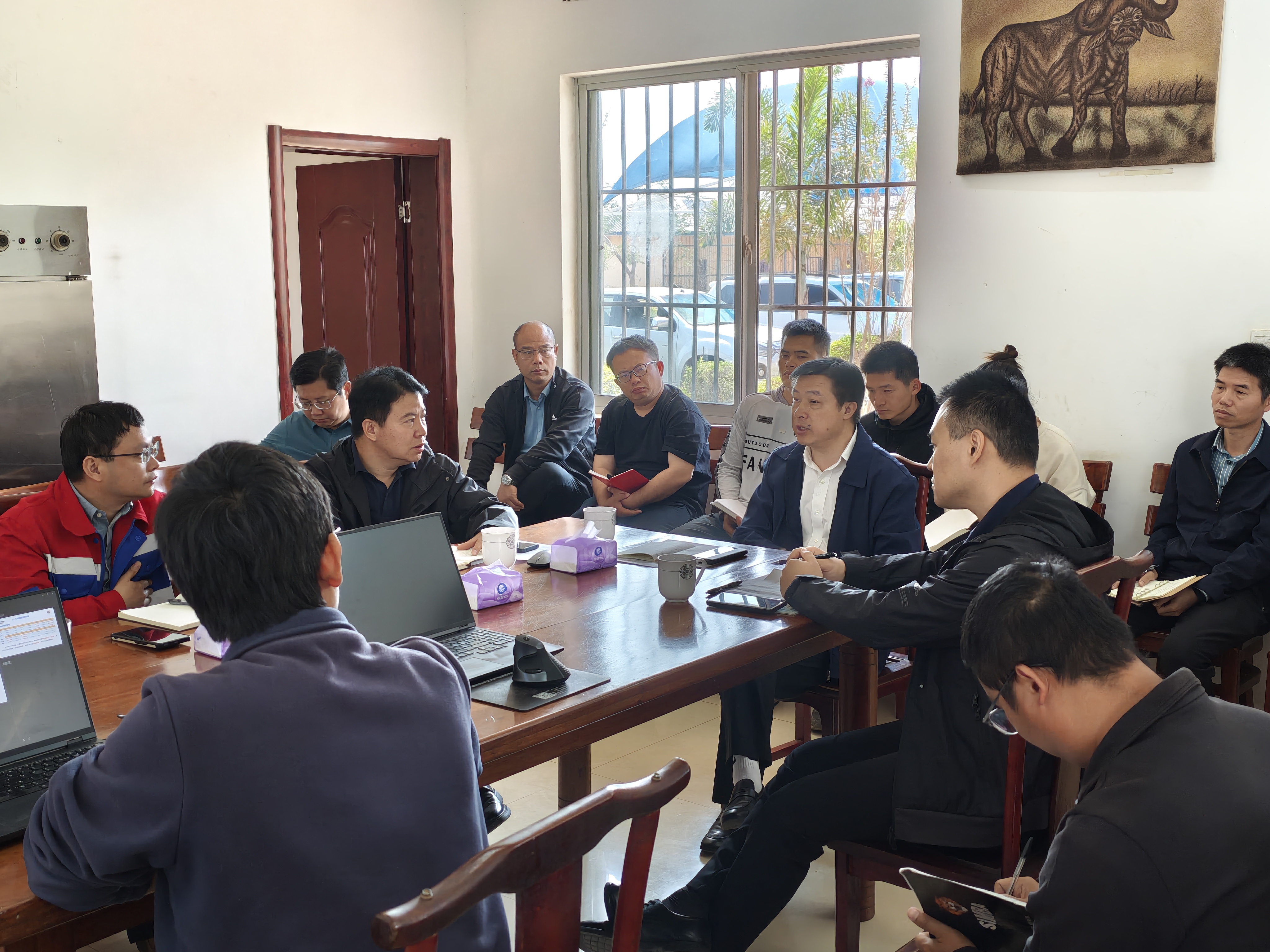 近日,中色桂林院董事长卢宗柳带队到刚果(金)、赞比亚调研指导公司非洲业务发展,深入项目基地全面了解生产经营和市场开拓情况,推动科研项目加快实施,检查“雷霆行动”措施落实,并亲切看望慰问奋战在海外一线的干部职工。