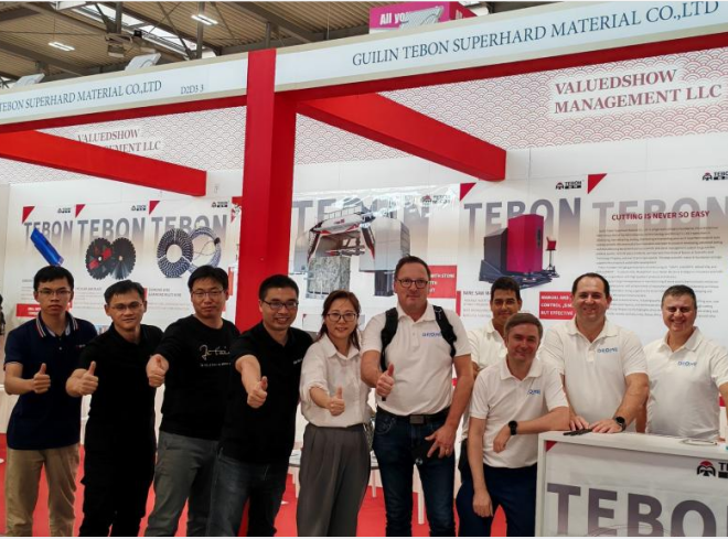 展会期间,特邦公司携手DROME团队一同亮相,向全球石材工业展示了新型TERRAN86金刚石组合绳锯机、金刚石绳锯机、金刚石矿山绳锯、金刚石组合绳锯、复合片等多个核心重磅产品。特邦公司展区现场宾客如云、人气爆棚,以其产品卓越的性能、高效的生产力和出色的耐用性吸引了众多参观者的目光,来自全球各个国家和地区的新老客户纷纷前来交流咨询。