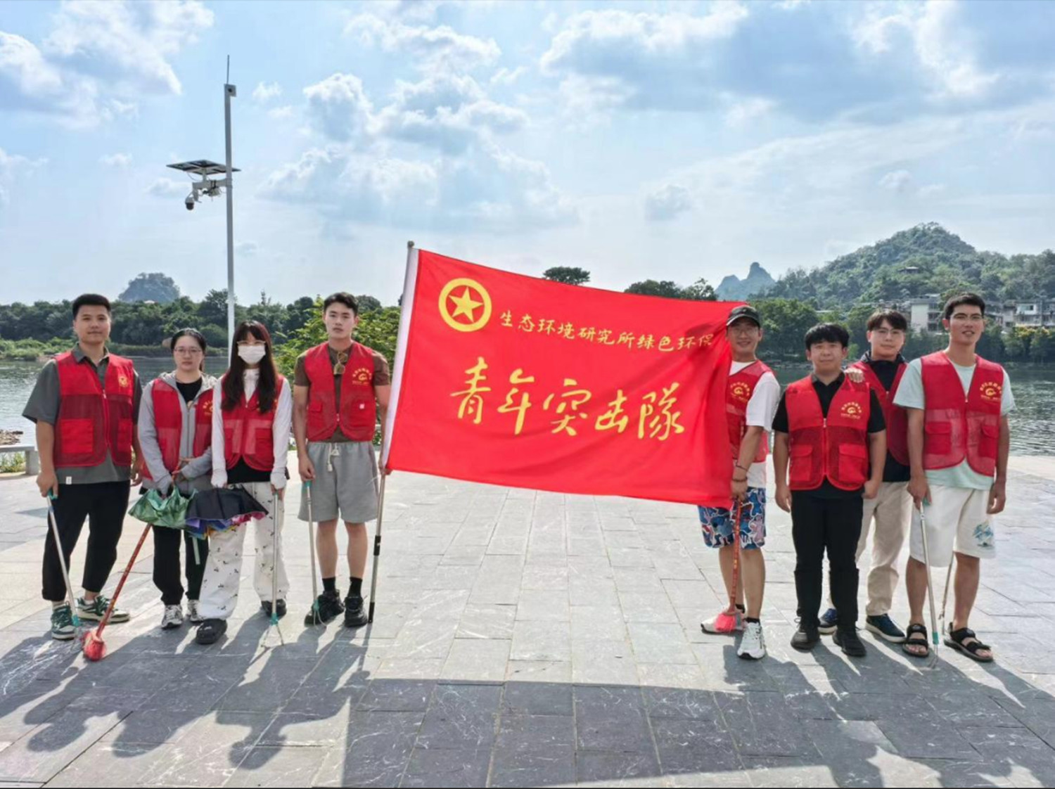 活动现场,志愿者分成多个小组,手持垃圾袋、扫帚和捡拾夹等工具沿着漓江河岸清理垃圾,用实际行动诠释了“守护漓江,从我做起”环保理念。生态环境事业部的团员青年们还利用专业的环保知识,从生态环境立法保护、生态环境修复工程和水源涵养补偿机制等方面开展了漓江流域生态保护宣传,号召大家保护好漓江,保护好桂林山水。