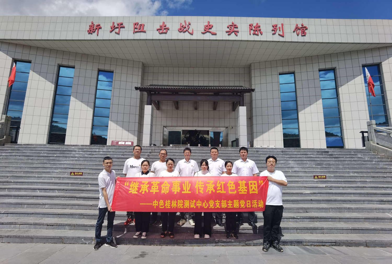 7月18日,测试中心党支部组织全体党员及发展对象赴灌阳湘江战役新圩阻击战酒海井红军纪念园开展“继承革命事业 传承红色基因”主题党日活动。中色桂林院党委委员、总会计师刘宗勇应邀参加活动。