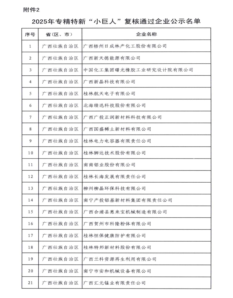 (特邦新材王智龙讯 )2025年10月,广西壮族自治区工业和信息化厅公示了2025年专精特新“小巨人”复核通过企业的名单,特邦新材凭借其卓越的科研创新能力、精细化的管理和在国内外细分市场的领先地位,从一众企业中脱颖而出,成功通过复核。这一重大荣誉的延续不仅标志着特邦新材在专业化、精细化、特色化、新颖化道路上取得了显著成就,也彰显了其在推动超硬材料工具行业经济高质量发展中的重要作用。
