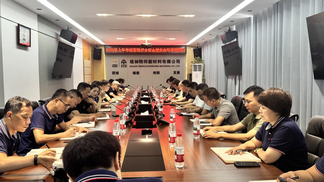 近日,特邦新材召开2025年上半年经营运行分析会暨安全环保调度会,全面落实中色桂林院年中工作会部署,总结上半年成绩,研判当前形势,部署下半年重点任务。公司董事长谢优明主持会议,总经理张延军作经营工作报告,副总经理兼安全总监周志成作安全环保专题报告,外部董事陈子君、肖乐银、张庆主出席会议,公司领导班子及各部门负责人参会。