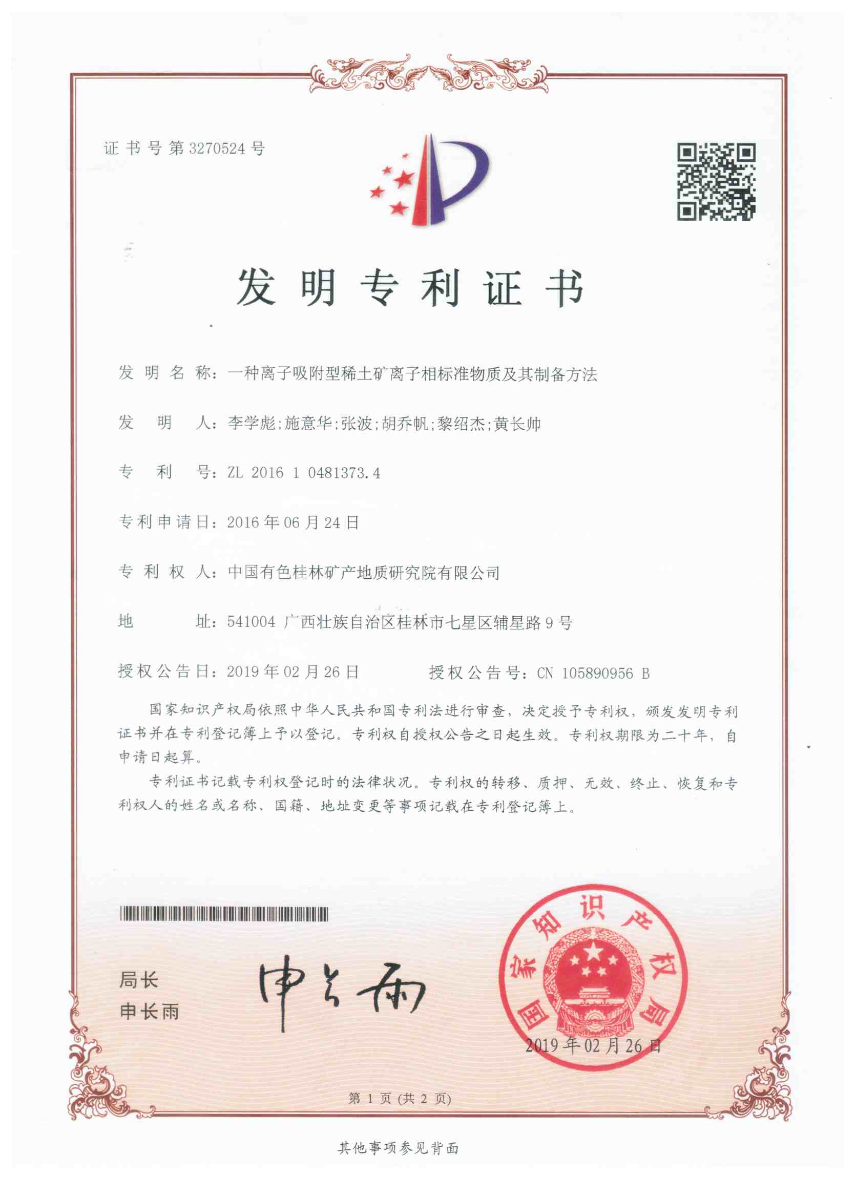 专利3.离子吸附型稀土矿离子相标准物质及其制备方法