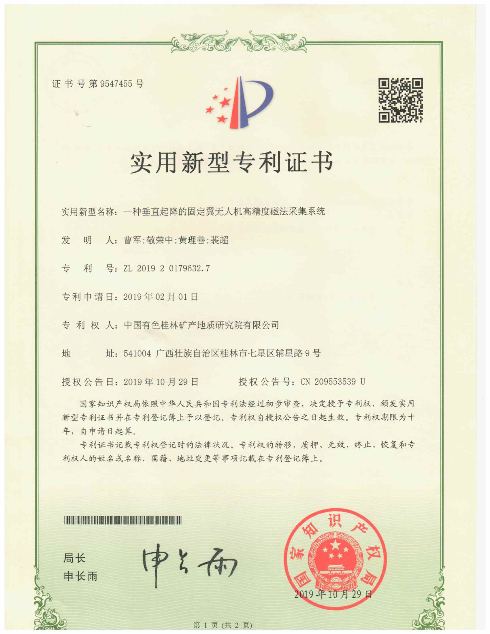 专利1.一种垂直起降的固定翼无人机高精度磁法采集系统