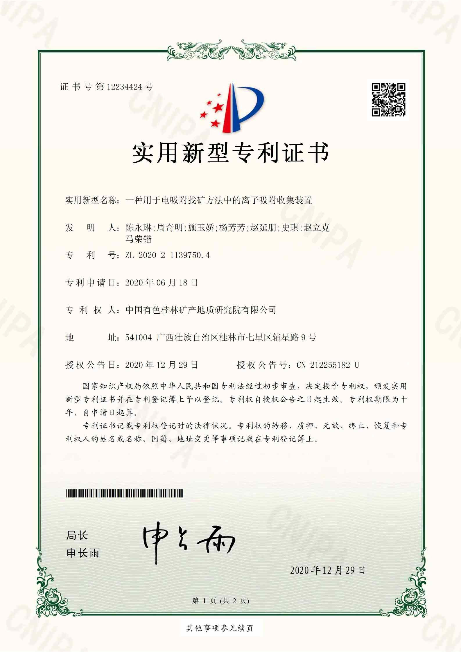 专利4.一种用于电吸附找矿方法中的离子吸附收集装置