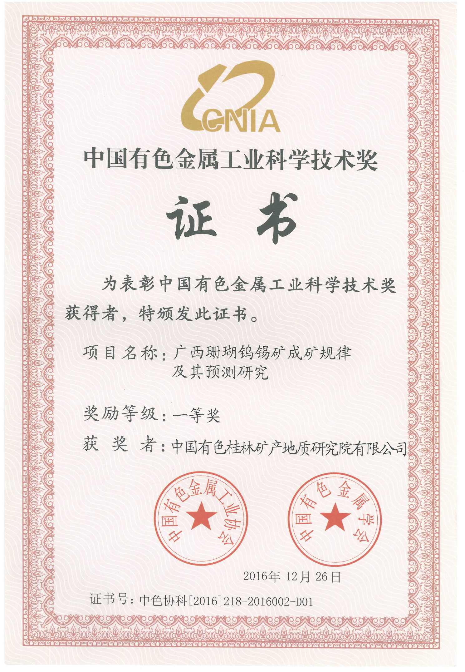 2016永利23411金属工业科学技术奖一等奖