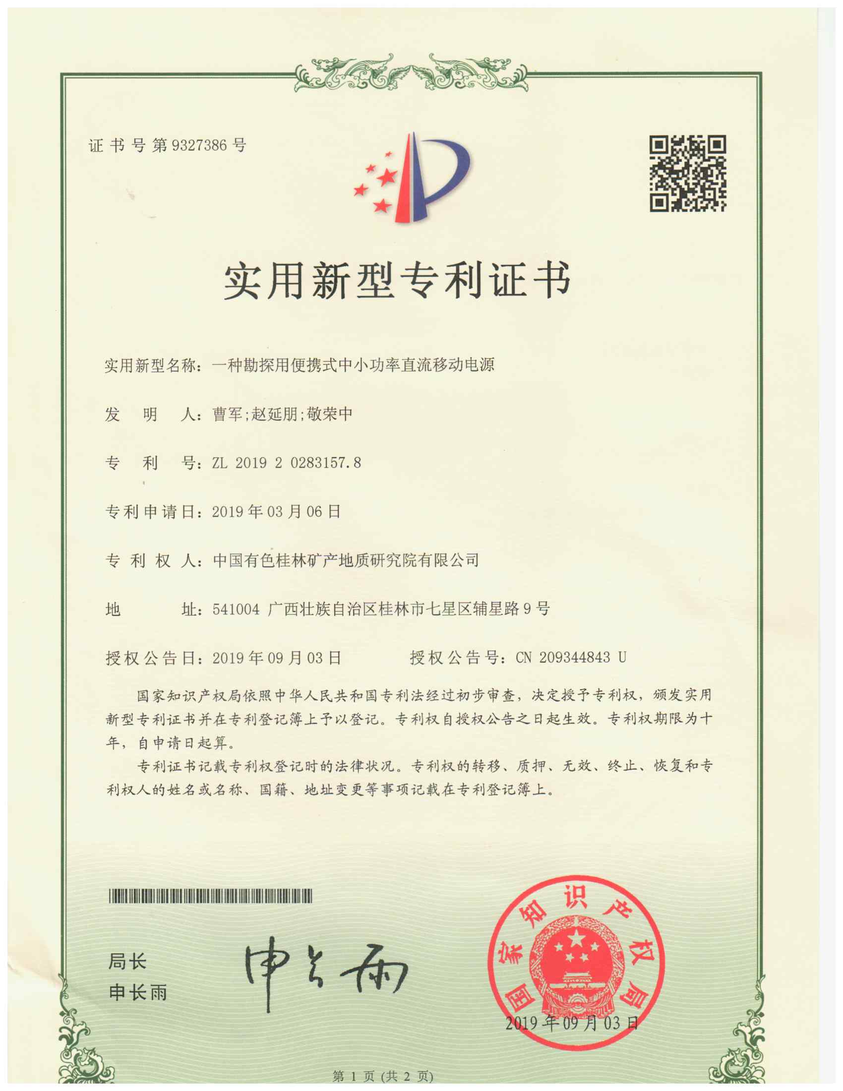 专利2.一种勘探用便携式中小功率直流移动电源