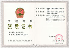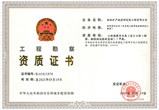 公司持有工程勘察专业类(岩土工程(勘察、工程物探测试检测监测))甲级、岩土工程设计乙级、劳务类(工程钻探)、水文地质勘察乙级、工程测绘乙级、建设工程质量检测(地基基础工程检测)、地基基础工程专业承包(贰级)等资质证书;检验检测机构资质认定、安全生产许可证、ISO 9001:2015质量管理体系认证、职业健康安全管理体系认证、环境管理体系认证等证书。
